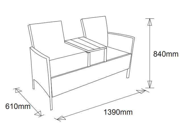 Садова лава - лава плетені зі столиком,Сталь, петан та штучне дерево натура, buuba