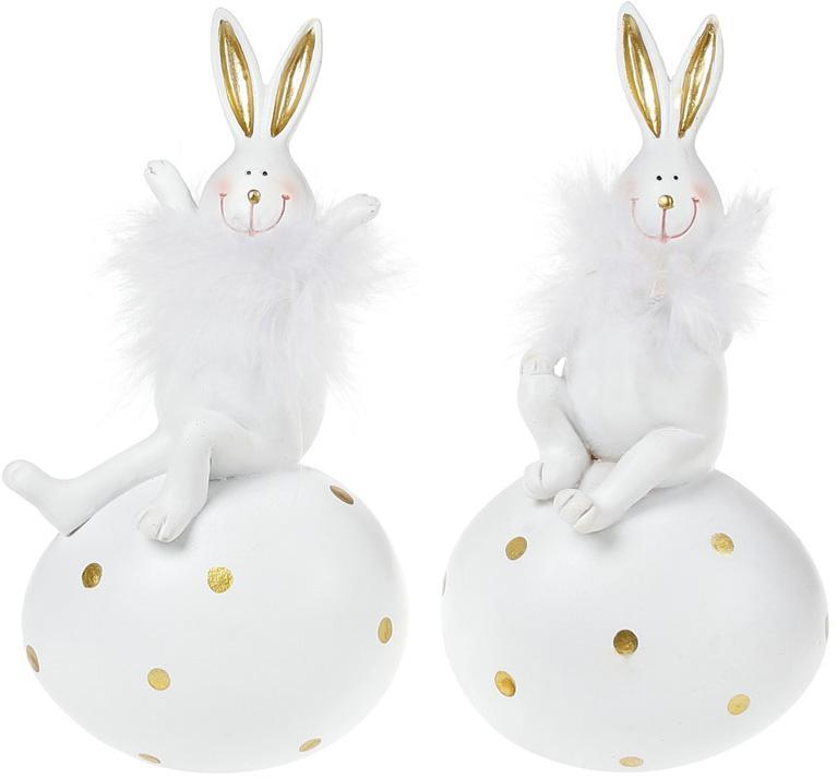 Набір 2 статуетки «Зайчик на яйці». Матеріал - полістоун (штучний камінь). У наборі 2 дизайни. Розмір: 7.5х6х14см.